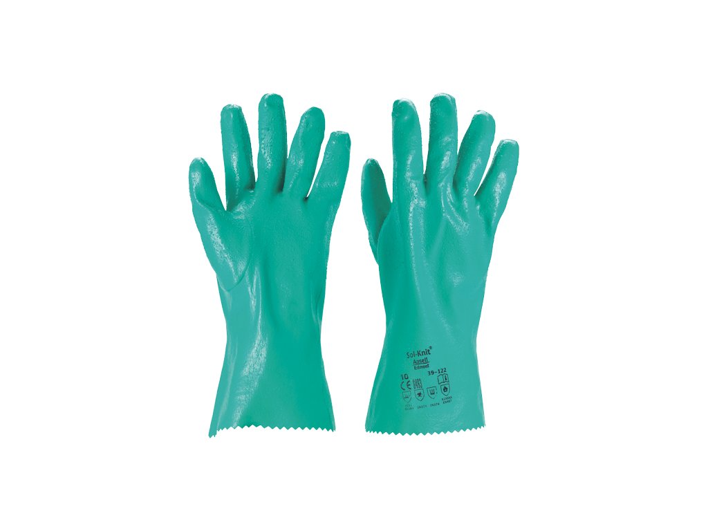 • zosilnené nitrilové rukavice máčané v bavlne • drsný povrch, chráni pred chemikáliami • spĺňajú požiadavky FDA na manipuláciu s potravinami • anatomický dizajn: zakrivené, vopred ohnuté prsty a palec otočené smerom k oku • dobrá obratnosť, bezpečný úchop vo vlhkom aj suchom prostredí • antistatické • dĺžka: 310 mm