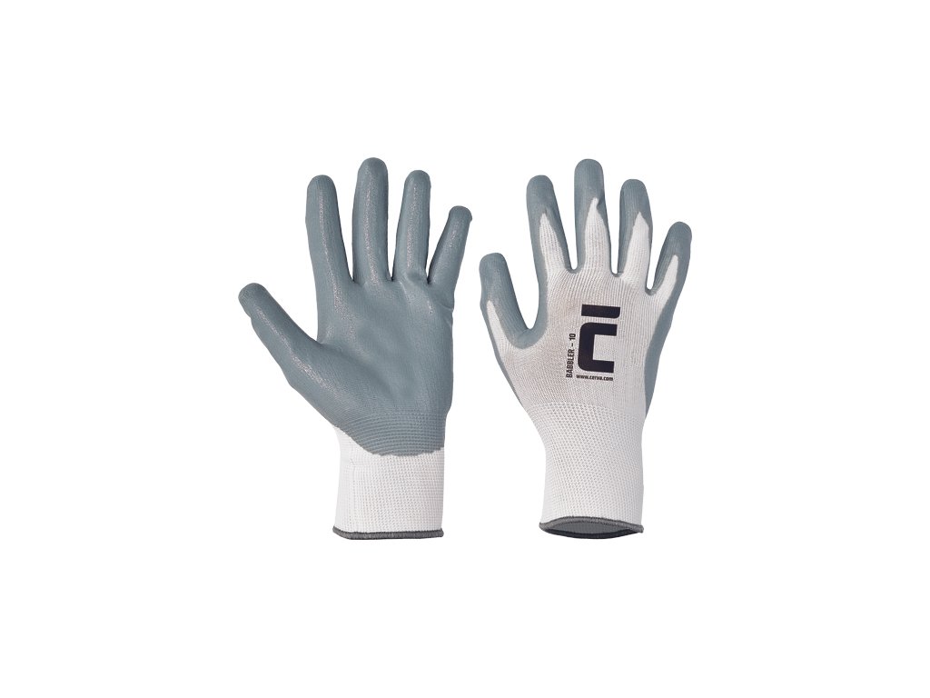 • pletené • bezšvové • nylonové rukavice s vrstvou mikroporézneho nitrilu v dlani a na prstoch • pružný náplet