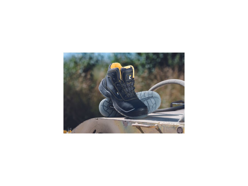 • bezpečnostná kotníková obuv s nekovovou tužinkou a aramidovou stielkou odolnou proti propichnutiu • podošva z PU/TPU • zvršok z kvalitnej kože – nubuk