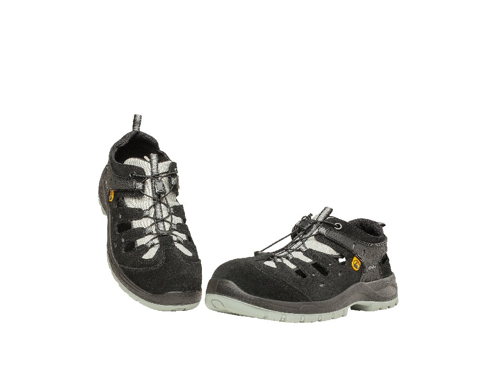 Vzdušný bezpečnostní sandál na nástřikové podešvi vybavený plastovou tužinkou a kevlarovou planžetou. Pásek na jazyku a patní očko jsou opatřeny reflexním prvkem. Obuv je vhodná do vnitřních i venkovních suchých provozů.