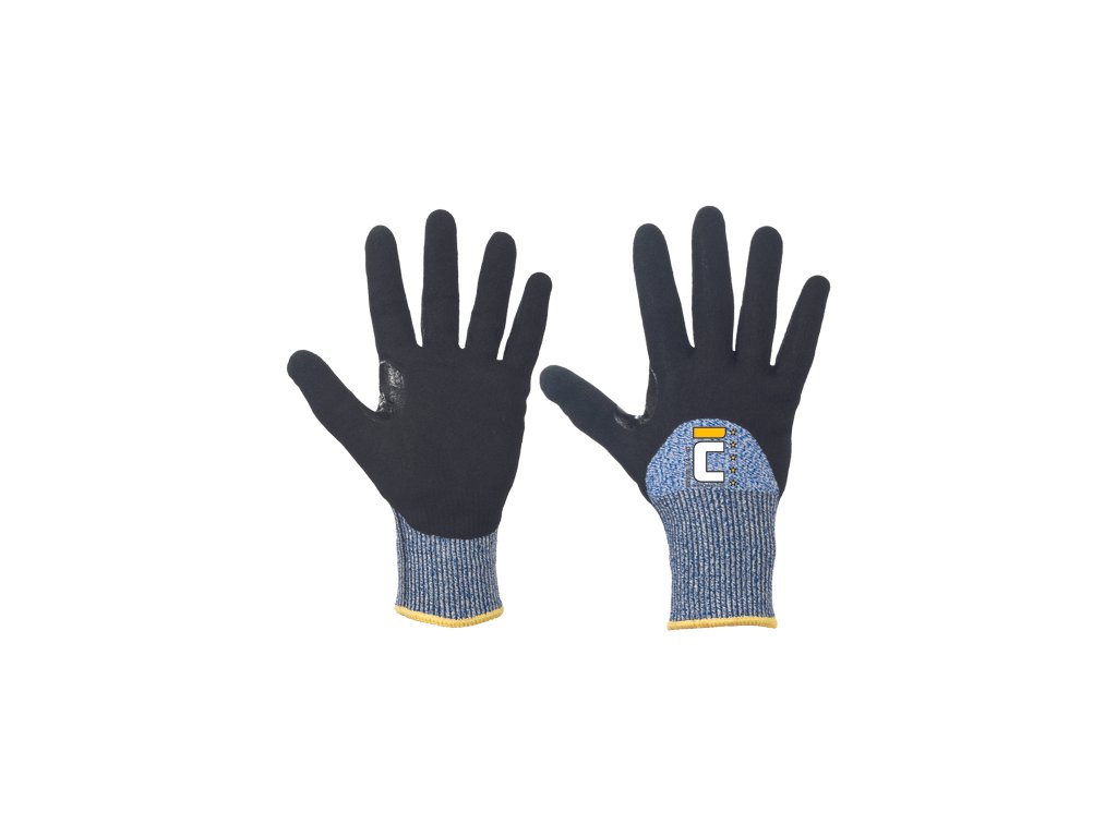 • pletené bezšvové rukavice s 3/4 máčaním v pieskovom nitrile s ochranou proti prerezaniu B • s výstužou v rozkroku medzi palcom a ukazovákom • vhodné na manipuláciu s ostrými a mastnými výrobkami, manipuláciu so sklom, spracovanie s mastnými kovovými dielmi a plechmi alebo údržbu strojov • rukavice neobsahujú sklenené ani oceľové vlákno a spĺňajú Oeko-Tex