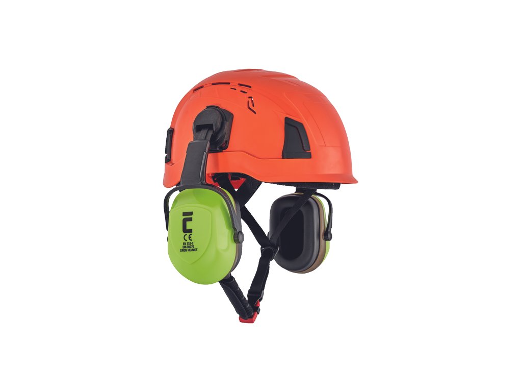 Dielektrické mušlové chrániče sluchu, ktoré sú pripravené na pripevnenie na priemyselné ochranné prilby. Vďaka vysoko viditeľnej farbe sú vhodné najmä pre použitie v exteriéri. Útlmová schopnosť je 30 dB.