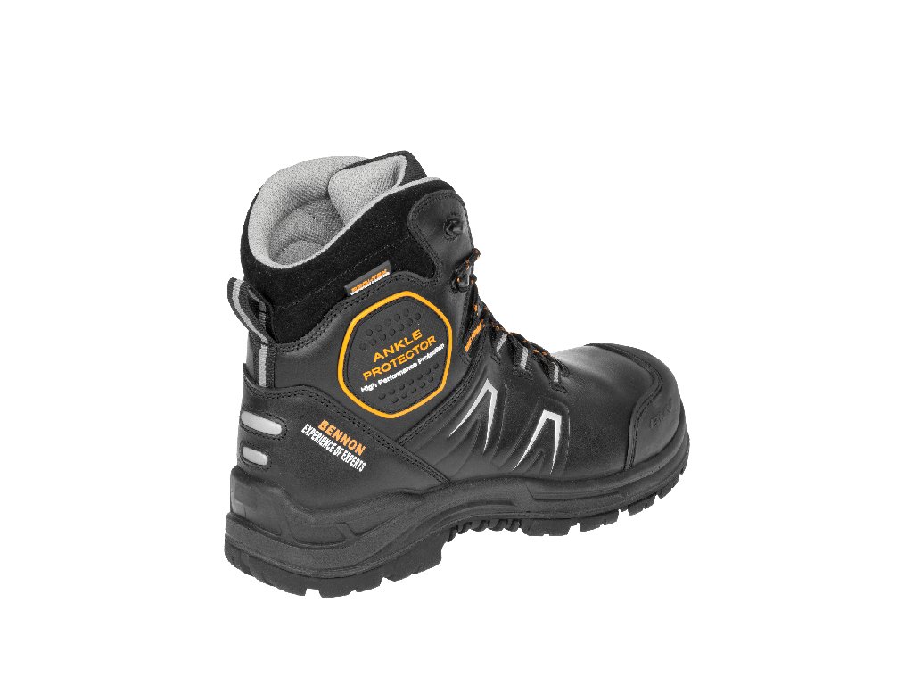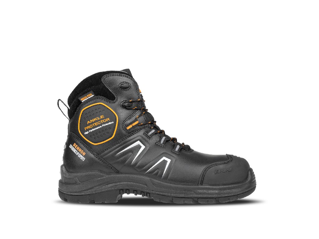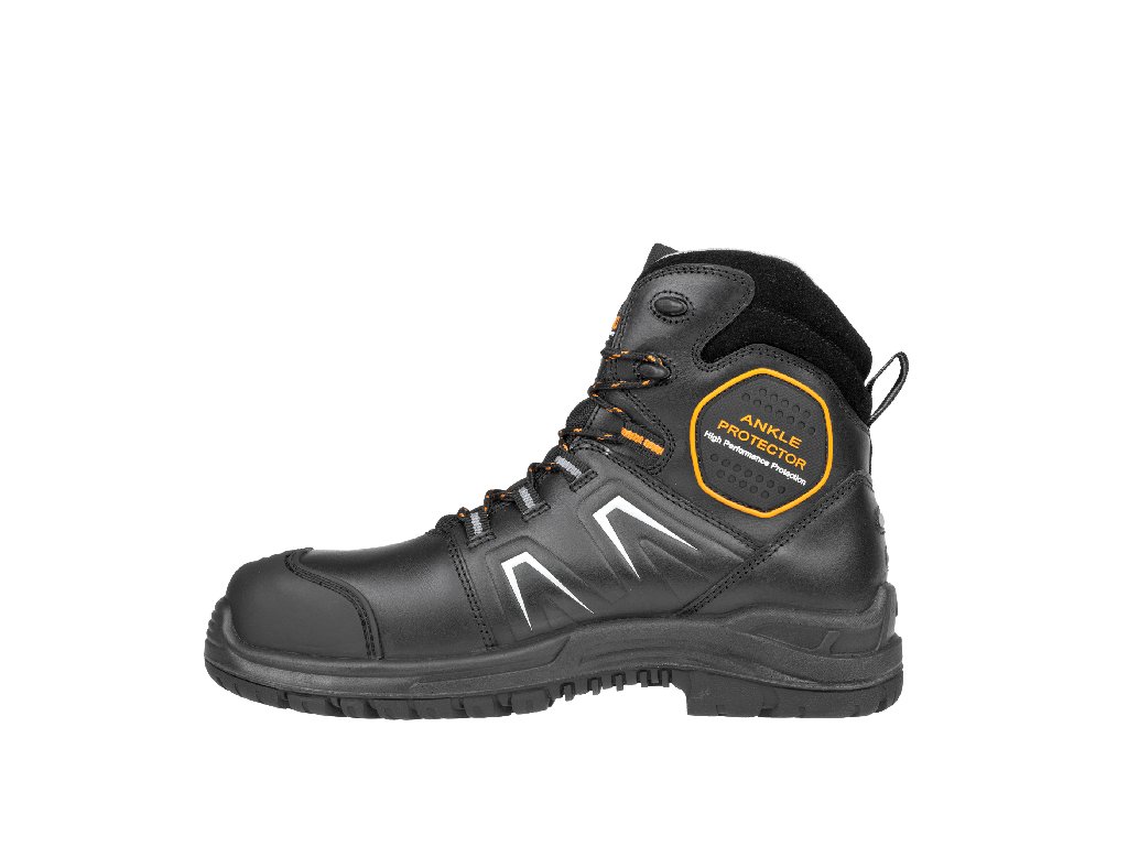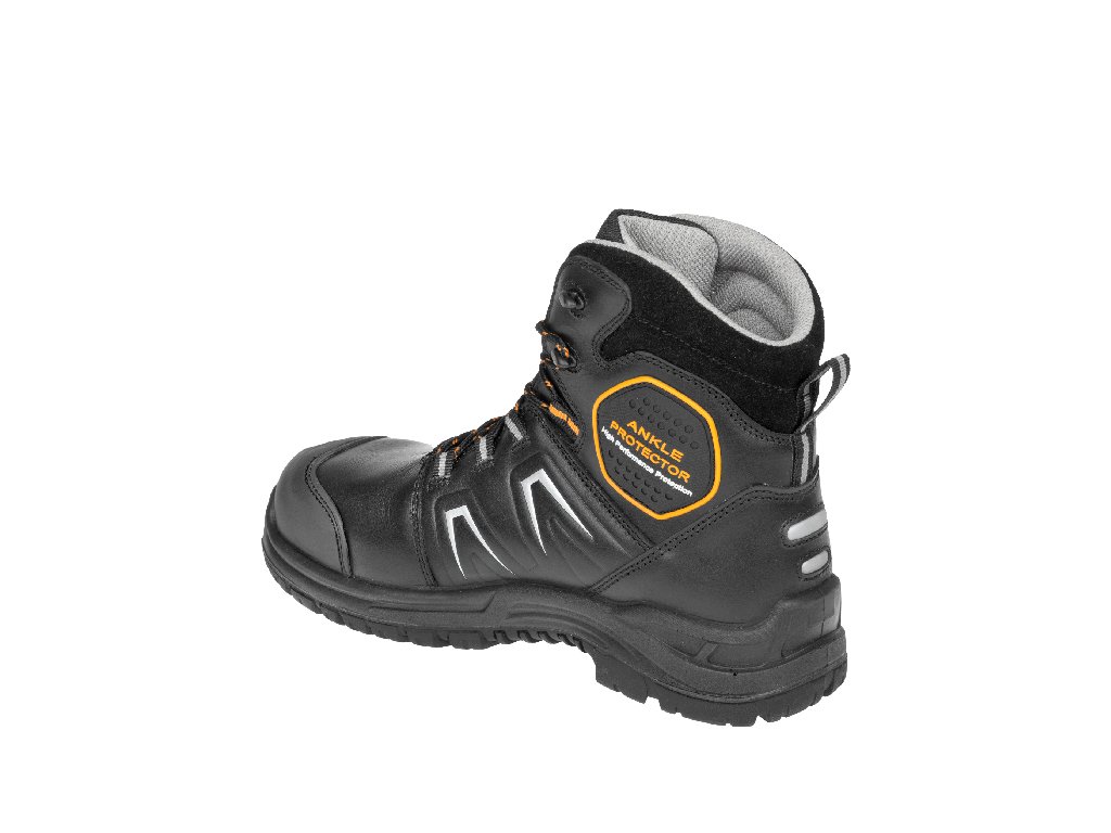 Celokožená bezpečnostní obuv s ochranou kotníku po obou stranách, bez kovových součástí, opatřená voděodolnou membránou REGI-TEX®. Obuv je vybavená dvoukomponentní nástřikovou podešví PU/pryž s TPU protiokopovou špicí a je vhodná pro celoroční použití v náročných venkovních provozech. Reflexní prvky v patní části zajišťují lepší viditelnost.