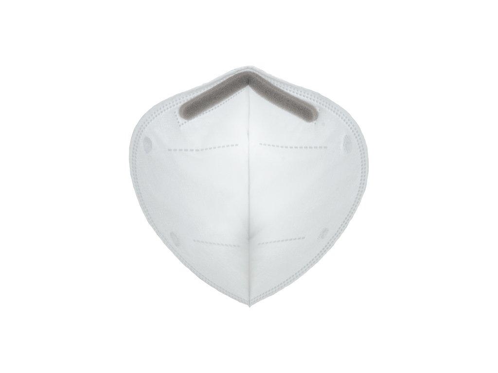Skladaný FFP2 respirátor s gumičkami s uchytením za uši. Všitý mäkký kovový nosník.