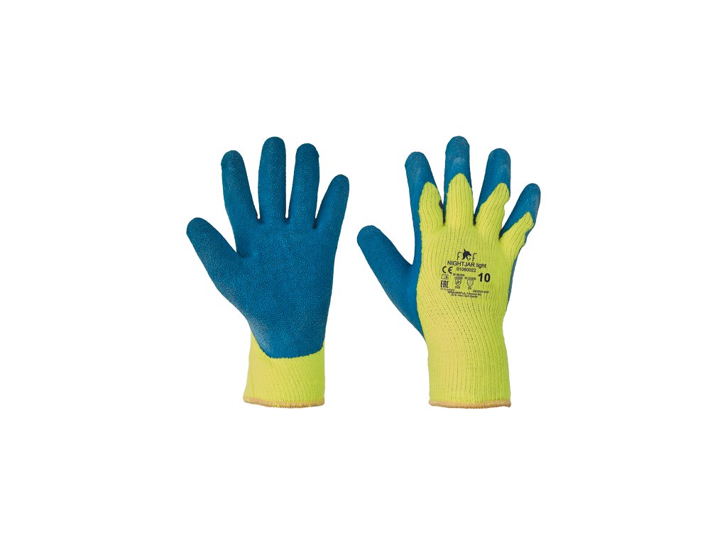 • rukavice z akrylu, máčané v modrom latexe