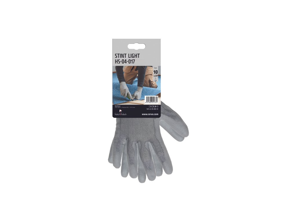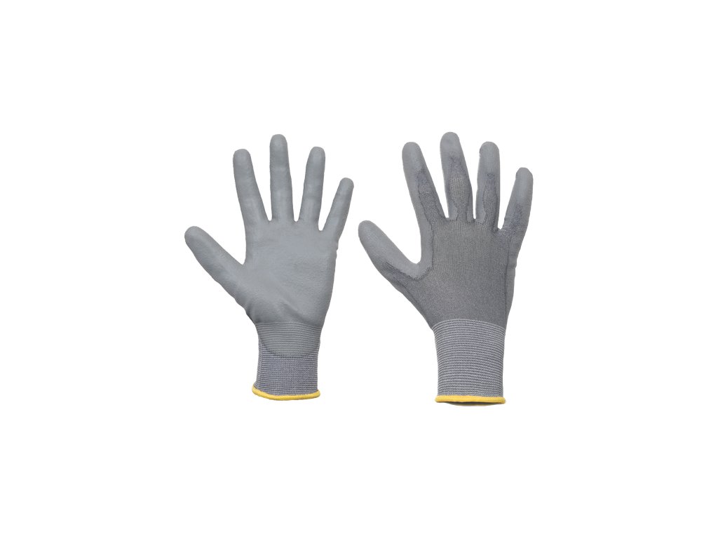 • pletené bezšvové rukavice kategórie prerezu B • sivý PU na dlani a prstoch • pružná manžeta
