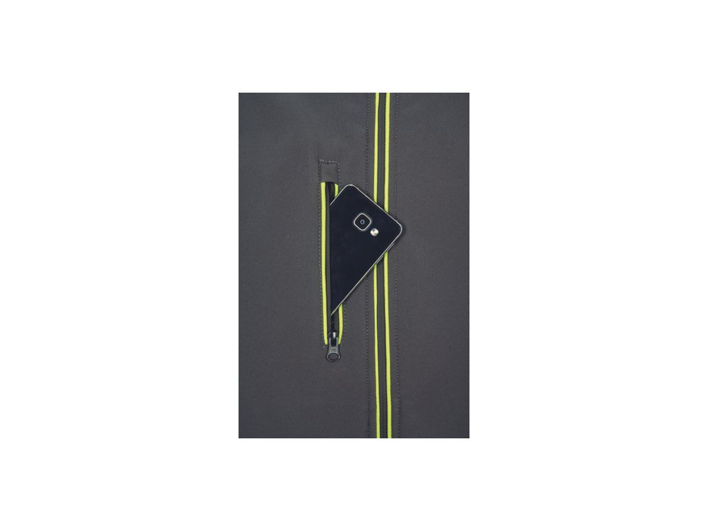 • pánska softshellová bunda s membránou a vnútornou fleecovou vrstvou • zapínanie na zips • 1 náprsné vrecko, 2 bočné vrecká na zips • 3 multifunkčné vnútorné vrecká • nastaviteľná šírka manžiet rukávov pomocou suchého zipsu • dekoratívne prešitie v kontrastnej farbe
