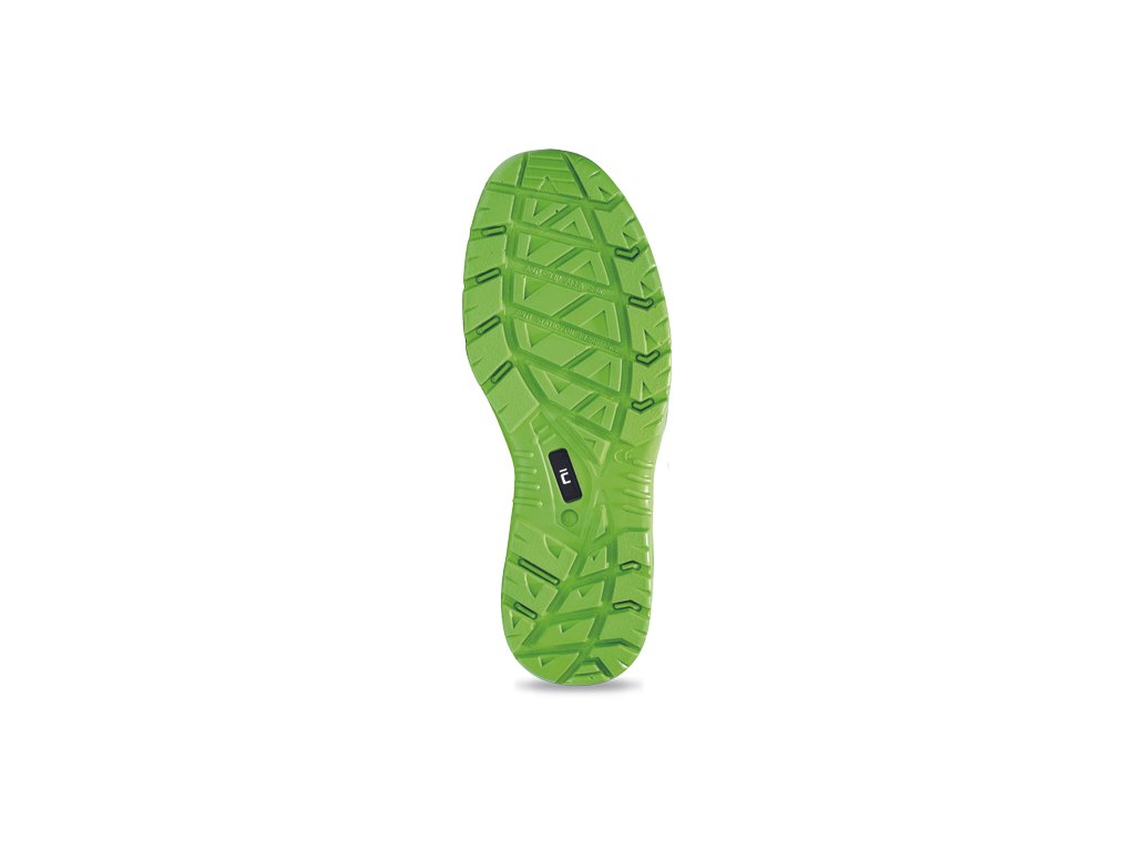 • bezpečnostná členková obuv v modernej čierno-zelenej farebnej kombinácii • zvršok obuvi je vyrobený z mikrovlákna a perforovaný po celej dĺžke • protišmyková podrážka z polyuretánu s dvojitou hustotou zaručuje nielen pohodlie, ale aj maximálnu bezpečnosť pri každom kroku • obuv je vybavená pohodlnou perforovanou vnútornou stielkou, ktorá zaručuje pohodlie a cirkuláciu vzduchu vo vnútri obuvi • absorpcia energie v oblasti päty tlmí nárazy a znižuje pocit únavy nôh • vďaka bezpečnostnej kompozitnej špici obuv spĺňa požiadavky normy EN ISO 20345: 2011 • to znamená, že nohy sú chránené proti stlačeniu silou do 15 kN alebo pádu bremena do 20 kg z výšky 1 m • nohy sú chránené aj zospodu vďaka kompozitnej medzipodrážke proti prepichnutiu • obuv neobsahuje kovové časti a je vybavená funkciou ESD • preto je ideálnym modelom do vnútorných priestorov a citlivých prostredí, kde je potrebné zabrániť iskreniu z elektrostatického výboja, alebo do priestorov vybavených bezpečnostným rámom