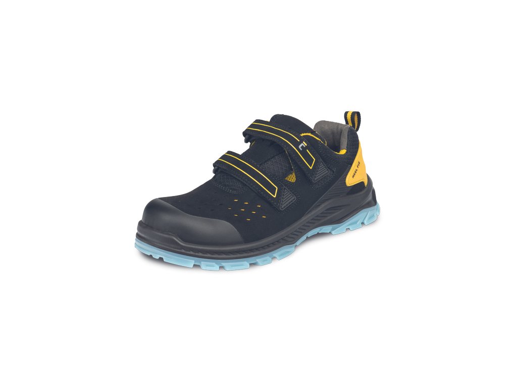 Priedušné a odolné bezpečnostné sandále s kompozitnou tužinkou a stielkou proti prepichnutiu, certifikované podľa bezpečnostnej triedy S1 PS. Antistatická ESD vložka chrániaca pred elektrostatickými výbojmi. Pohodlná a pružná dvojzložková PU/TPU podrážka. TPU vrstva zaisťuje vyššiu odolnosť a má nefarbiaci charakter. Zvršok z mikrovlákna so zvýšenou ochranou proti oderu v oblasti špičky a stabilizátorom päty. Priedušnosť je tiež zvýšená bohatou perforáciou. Zapínanie na suchý zips. Skvelá voľba pre náročné práce v interiéri, ako sú logistické centrá alebo priemyselná výroba
