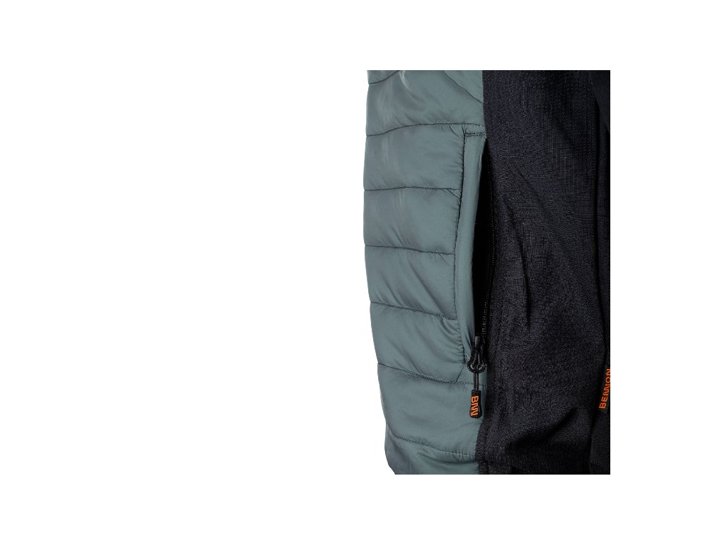 V oblasti rukávů je použit velmi pružný a prodyšný materiál, který vám při práci i ve volném čase umožňuje pohyb rukou bez omezení a navíc i přispívá k dobré cirkulaci vzduchu, takže vaše pokožka může snadno dýchat, nezpotíte se tak snadno. Velkou předností tohoto materiálu (RIPSTOP) je i to, že je velmi odolný proti prodření. Tento materiál je dál použit i v oblasti ramen. Takže pokud nosíte často batoh, brašnu nebo nějaká těžká břemena na ramenou, můžete být déle v klidu, bunda odolá a jen tak se neprodře.
