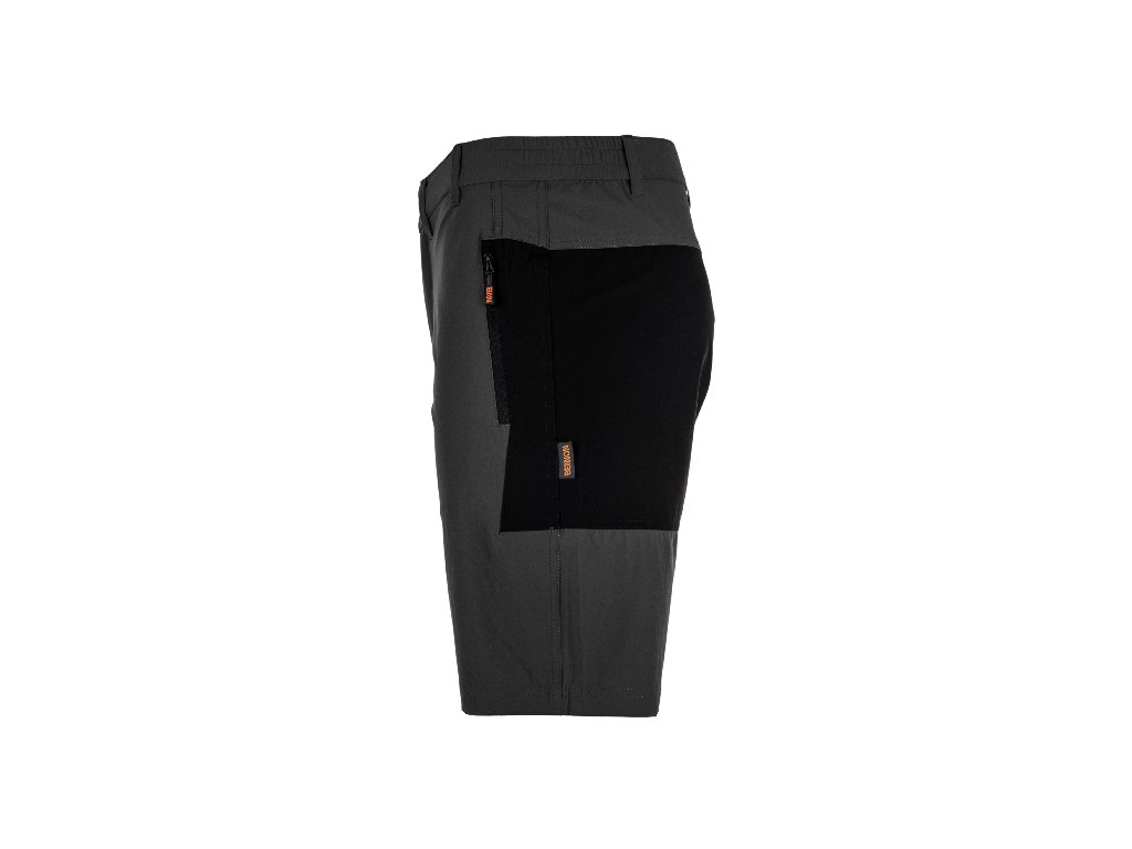 Lehké a prodyšné kraťasy vhodné pro volný čas i práci v nenáročném pracovním prostředí odolný strečový materiál 2 kapsy na zip na předním díle nohavic 1 zadní kapsa na pravé straně na zip elastický pas – pružná guma po obou stranách pasu