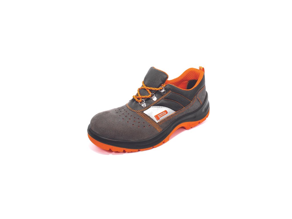 • bezpečnostná poltopánka s oceľovou tužinkou, ktorá chráni pred stlačením silou do 15 kN alebo pádom bremena s váhou do 20kg z výšky 1m • antistatická podošva vyrobená z dvojhustotného polyuretánu garantuje nielen komfort, ale aj bezpečie vďaka protišmykovým vlastnostiam podrážky, ktorá je navyše rezistentná olejom a oderu • zvršok obuvi je vyrobený z perforovanej prírodnej brúsenej kože Alvier a vnútorná podšívka z priedušného materiálu Airnet Mesh • tento model patrí do kolekcie Basic Neos
