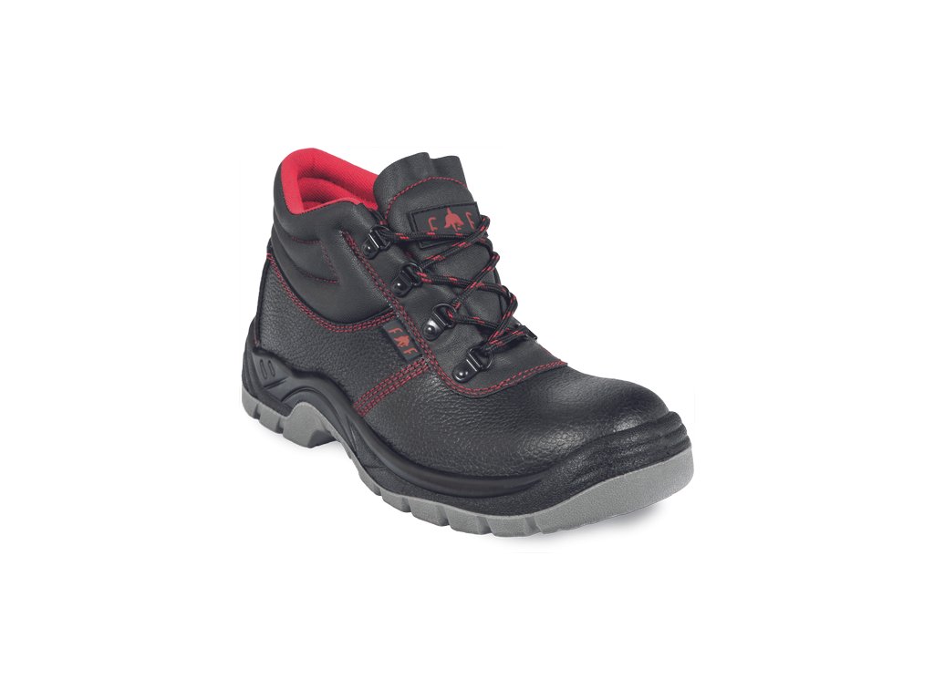 • bezpečnostná členková obuv s oceľovou bezpečnostnou špicou • stielkou proti prepichnutiu • PU/PU podošvou rezistentnou voči olejom • zvršok – reliéfna štiepaná koža