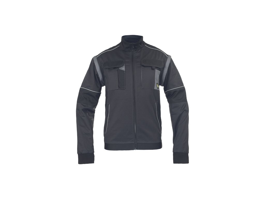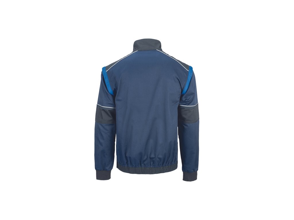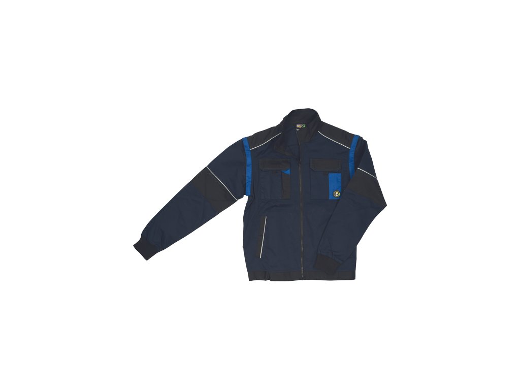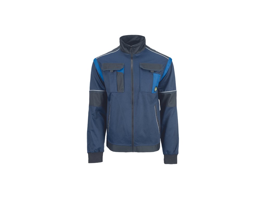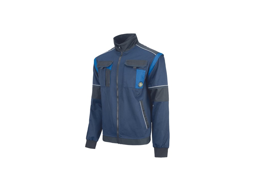 • men's work jacket with zip closure covered by a placket • 2 side pockets • 2 breast pockets with velcro flap • reinforced shoulder areas • detachable sleeves with elastic cuffs • elastic waistband • reflective details
