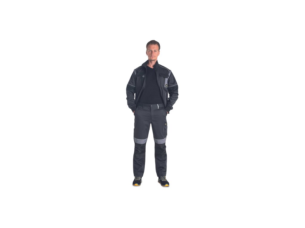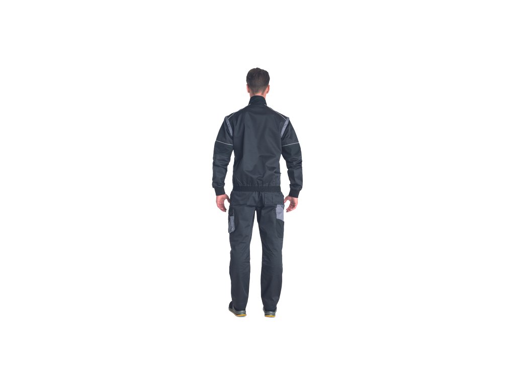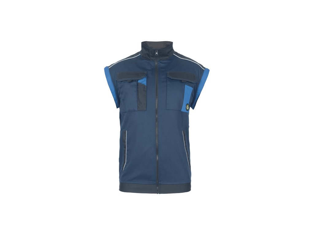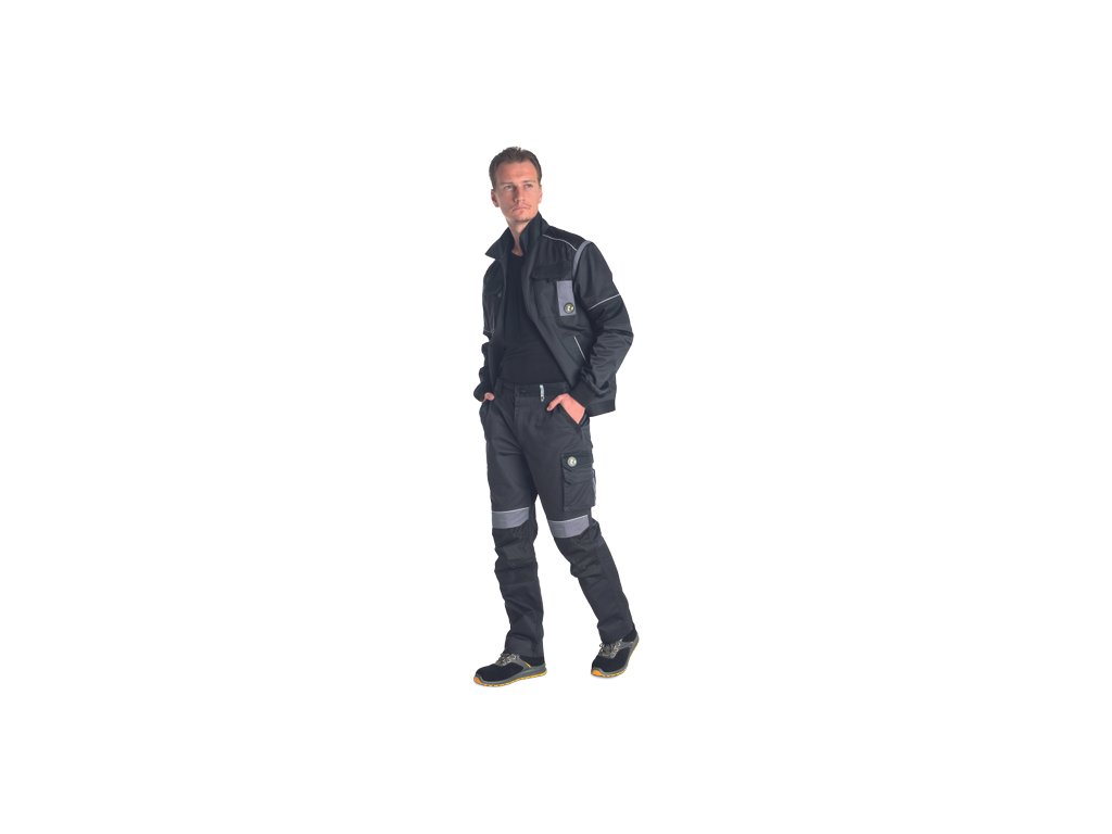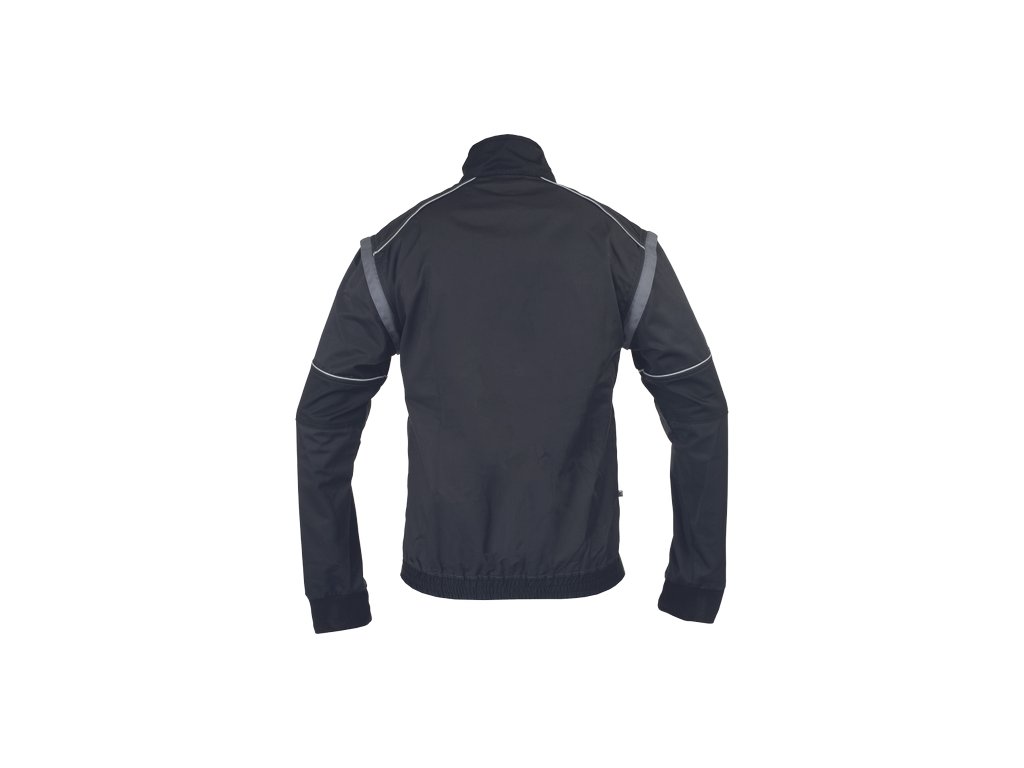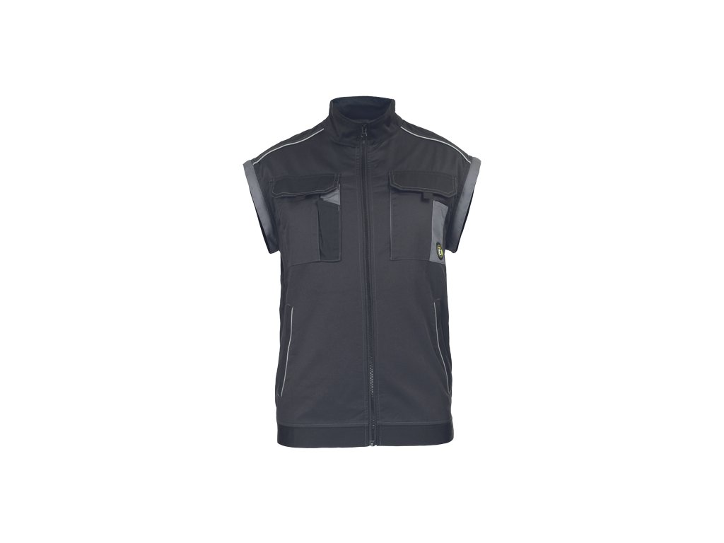 • men's work jacket with zip closure covered by a placket • 2 side pockets • 2 breast pockets with velcro flap • reinforced shoulder areas • detachable sleeves with elastic cuffs • elastic waistband • reflective details