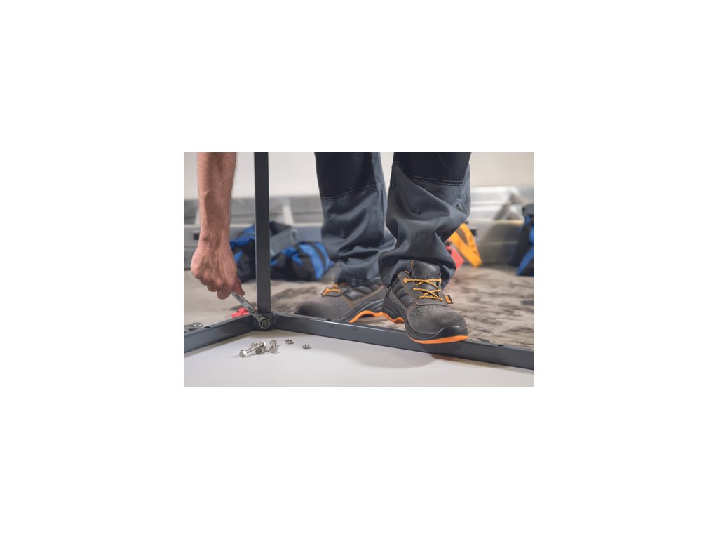 • bezpečnostná poltopánka s kompozitnou špičkou • antistatická podrážka z polyuretánu s dvojitou hustotou, ktorý je odolný voči olejom a oderu • zvršok z brúsenej kože a vnútorná podšívka z priedušnej sieťoviny Airnet • ESD