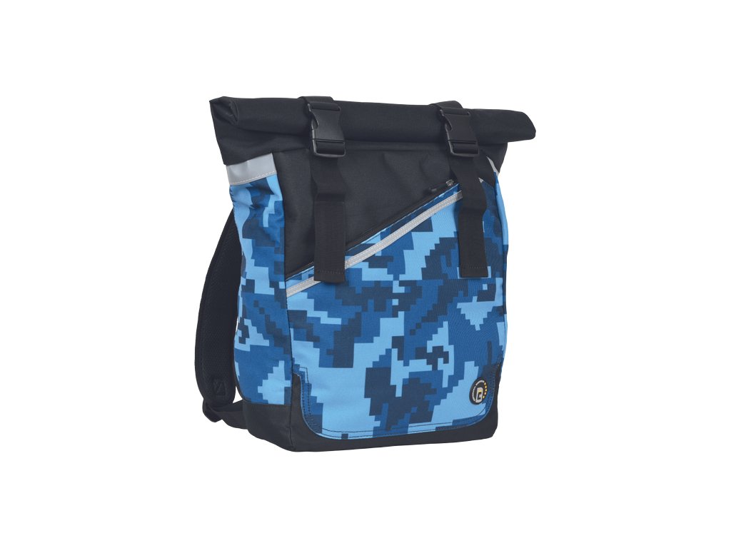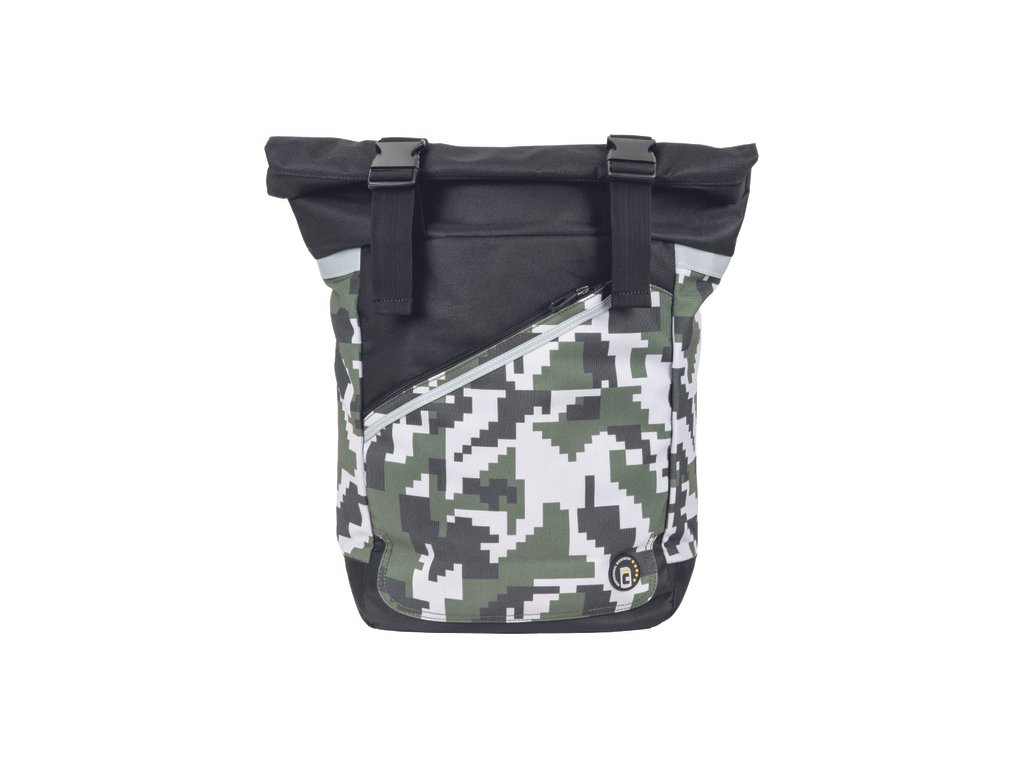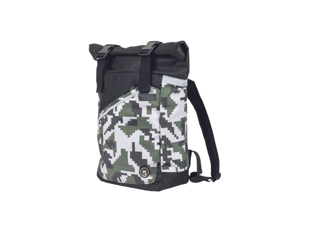 • priestranný jedno komorový ruksak v modernom maskáčovom vzore • vnútorný organizér pre vloženie lap-topu, mobilného telefónu a peňaženky • vystužený chrbát a ramennéí popruhy, ktoré možno skrátiť pomocou rolovacích spon