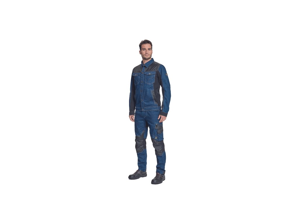 • pánska pracovná bunda v džínsovom štýle so zapínaním na gombíky • elastická predpieraná džínsovina • zosilnenie TRIFIBETEXPRO® a CORDURA® v oblasti ramien a rukávov • 2 bočné vrecká • 2 náprsné vrecká na gombík