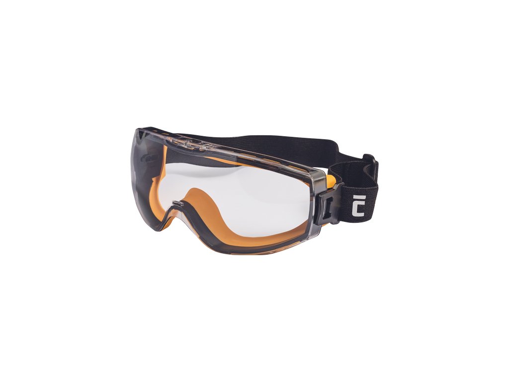 Uzatvorené okuliare s nepriamym vetraním. Perfektné utesnenie zaisťuje veľmi komfortné TPR tesnenie. Zorníky so špeciálnou hydrofóbnou a olejofóbnou úpravou SUPER HYDRO. Možno používať s ostatnými OOPP - respirátory, mušľové chrániče a iné. Hmotnosť: 57 g. EN166 1 BT