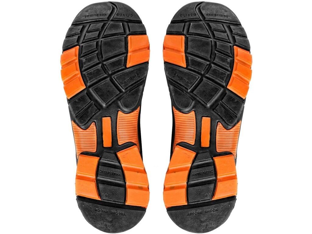 Bezpečnostní sandál s ocelovou špicí, reflexní doplňky. Materiál: svršek z 1,4 - 1,6 mm perforované hovězí broušené kůže kombinované s PU doplňky, podšívka z prodyšné oděru odolné textilie, podešev: gumová, olejivzdorná, antistatická, protiskluzová.