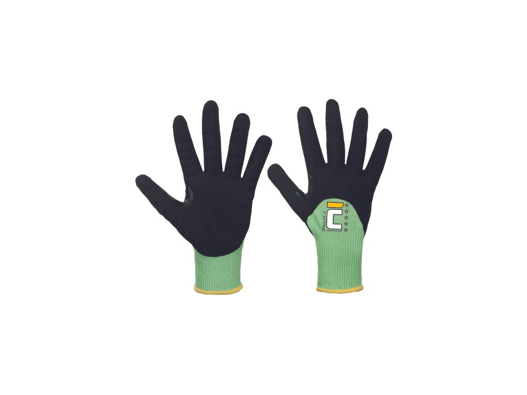 • pletené bezšvíkové rukavice s 3/4 máčaním v mikroporéznom nitrile • ochrana voči rezu F • zosilnenie v oblasti medzi palcom a ukazovákom pre dlhšiu životnosť rukavice • vhodné pre manipuláciu s ostrými a mastnými dielmi, manipulácia so sklom alebo opracovanie mastných kovov a plechov