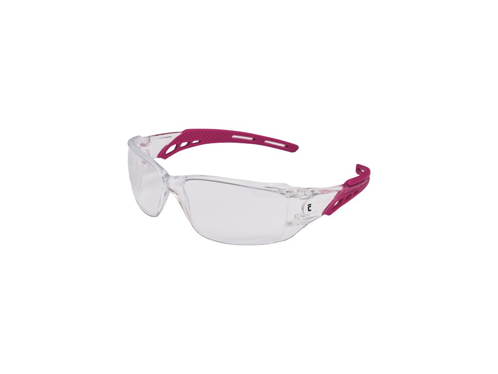 Dámské ochranné okuliare moderného vzhľadu s polykarbonátovým zorníkom triedy 1FT podľa normy EN 166. Zorník s ochranou proti poškriabaniu a zahmleniu. Ochrana proti letiacim časticiam s nízkou energiou. Bezfarebný zorník s ochranným filtrom proti UV žiareniu podľa normy EN 170. Dymový zorník s protislnečným filtrom podľa normy EN 172. Kompatibilné so šnúrkami ROOTY.