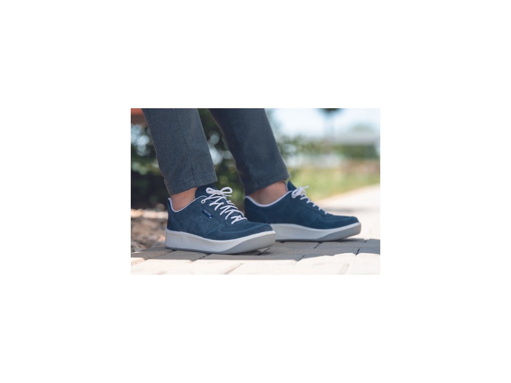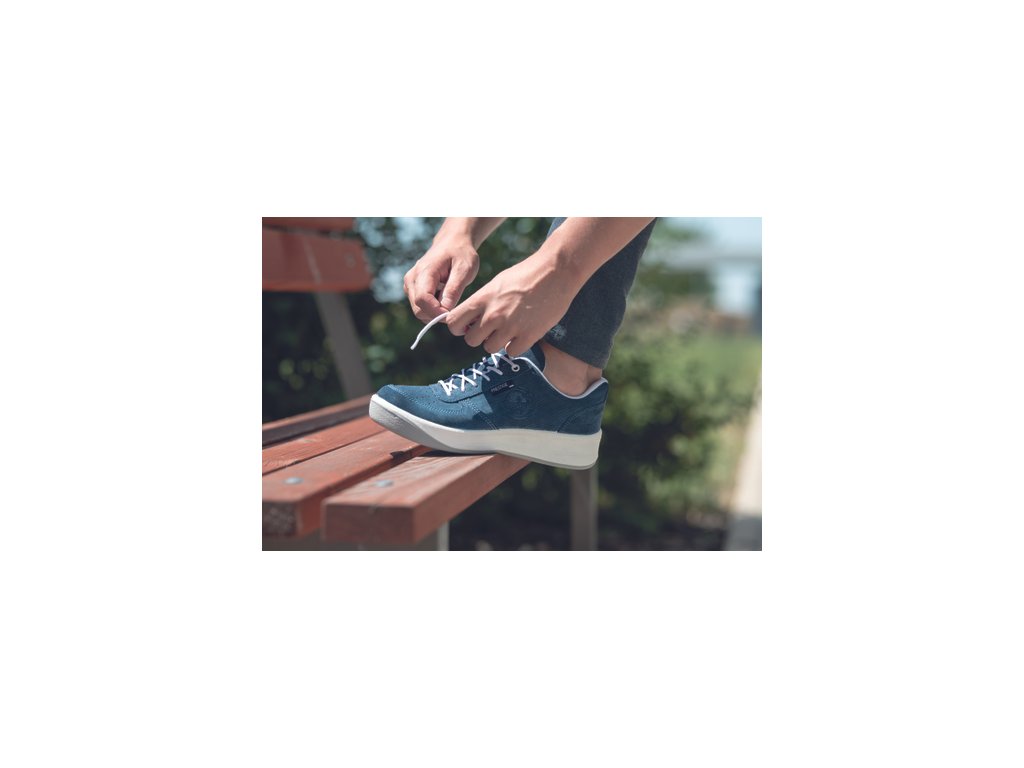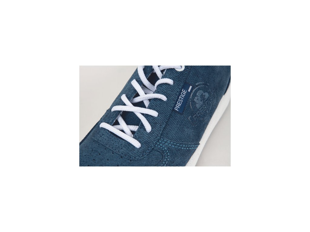 zvršok: talianska vlasová koža (semiš) v denimovej úprave doplnená odolnými textilnými prvkami; členok: molitanové vankúšiky pre väčšie pohodlie nohy; podšívka: kvalitný textilný materiál; podošva a medzipodrážka: dvojkomponentný polyuretánový nástrek, tlmiaci nášľapné sily a šetriaci pohybový aparát; podošva odolná proti palivovým olejom