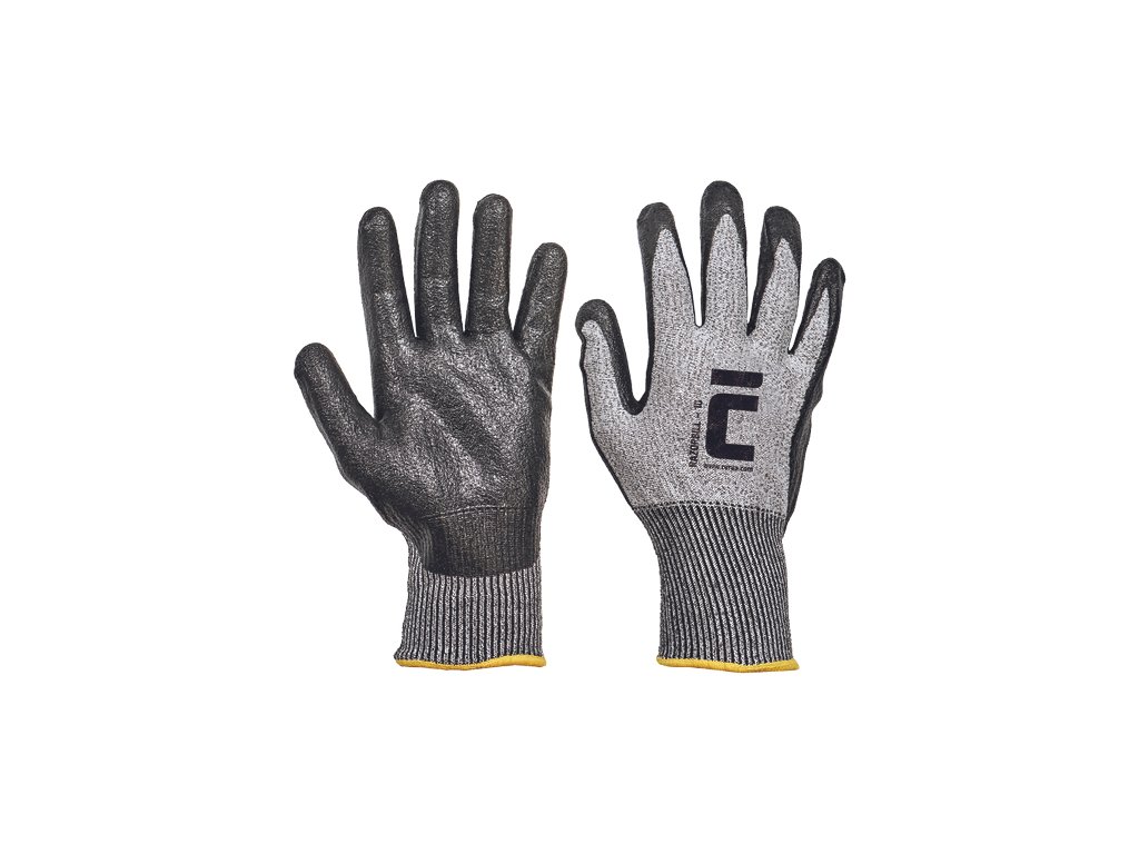 • pletené, bezšvové rukavice z modifikovaného skleneného vlákna, Spandexu a nylonu • s nánosom HCT nitrilu v dlani a na prstoch • odolnosť proti prerezu tr. C