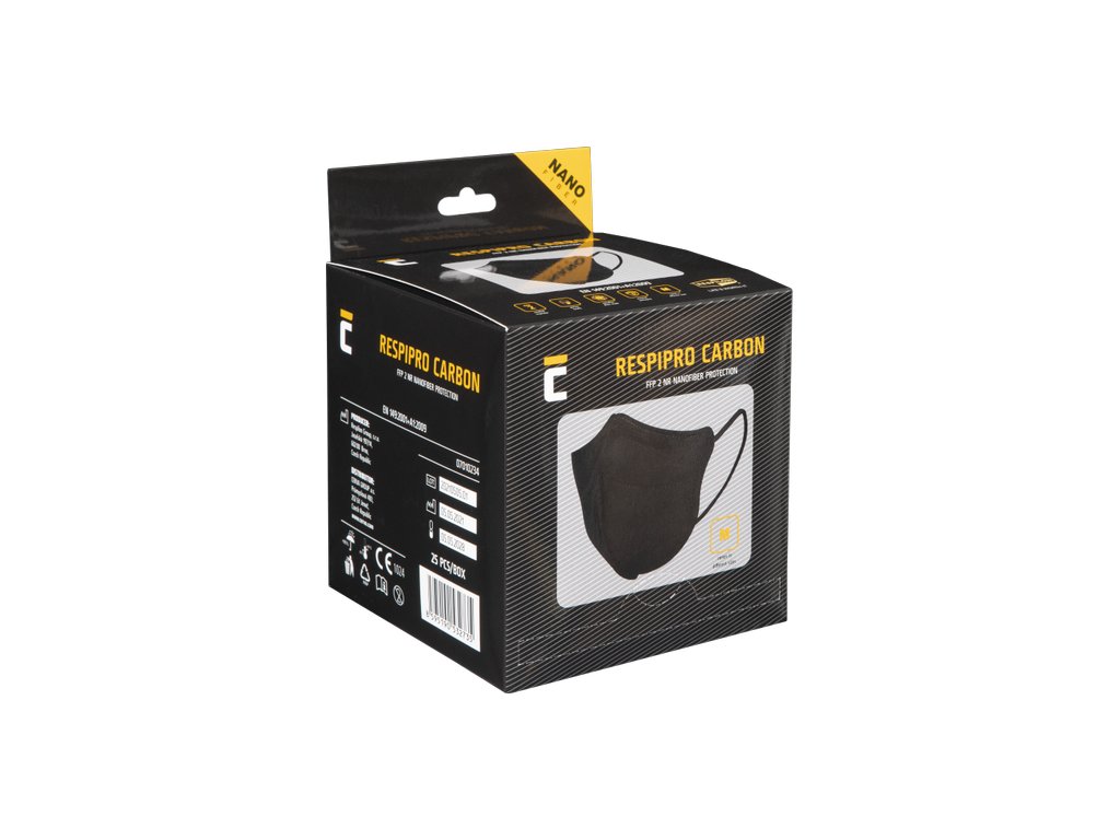 Antivírusový nano respirátor FFP2 RespiPro Carbon zaisťuje vďaka nanovlákennej membráne záchyt vírusov, baktérií, prachu, smogu, peľu a alergénov. Vrstva aktívneho uhlia - carbonu eliminuje pachy. Respirátor má unikátny anatomický tvar, vďaka ktorému perfektne padne na tvár a nedochádza tak k nežiadúcemu podsávaniu vzduchu. Ideálna voľba pre profesionálov v povolaniach, ktoré kladú dôraz na bezpečnosť, ako sú zdravotníci, záchranári, hasiči, vojaci či policajti. Pre lepšie prispôsobenie využite plastovú sponu na zopnutie gumičiek za hlavou, ktorá je súčasťou balenia. Dostupný v dvoch veľkostiach (M, L) a dvoch baleniach (3 kusy, 25 kusov).