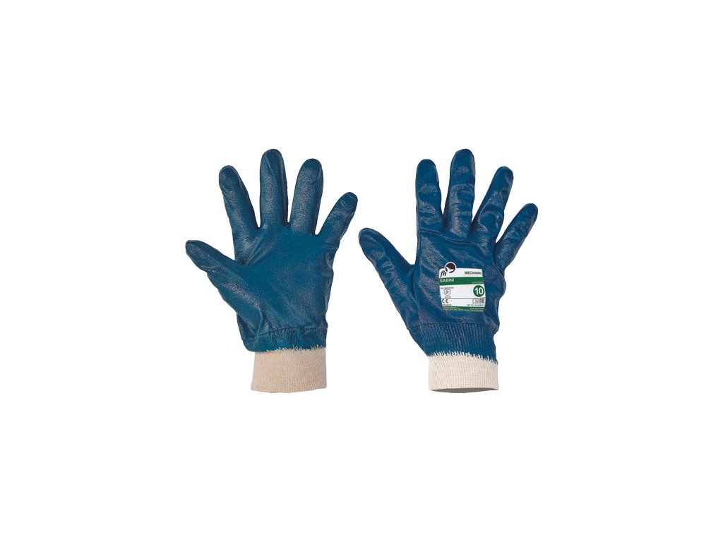 • rukavice šité z bavlneného úpletu • máčané v nitrile (protišmykové uchopenie) • s elastickou pletenou manžetou zabraňujúcou prieniku nečistôt • určené pre prácu s abrazívnymi materiálmi v ľahko zaolejovanom prostredí