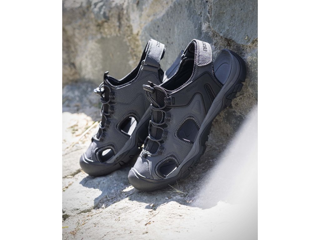 - trekový sandál s plnou špicou a textilným zvrškom s PU