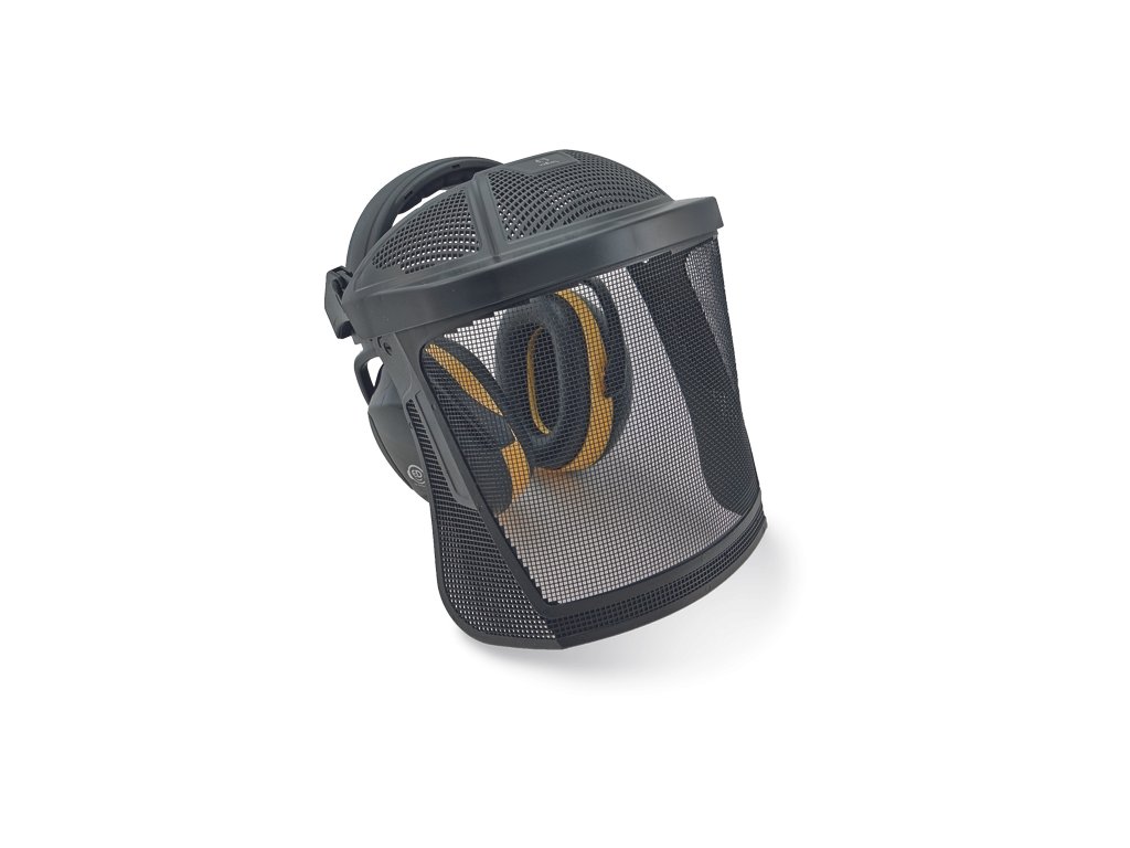 Hellberg headset combination with stainless steel wire mesh face shield and ED 2H Ear Defender earmuffs; maximum comfort and protection for users who do not need head protection at the same time; meet the EN 352-1: 2002 standard