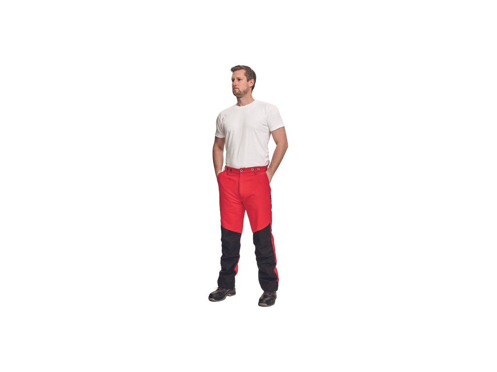 pánske nohavice proti prerezaniu na prácu v lese • nepremokavá membrána Hydura® použitá ako výstuž na prednej strane nohavíc • zapínanie na zips s klopou • 2 vrecká džínsového typu, 1 vrecko na meter • elastický pás s pútkami na opasok a gombíkmi na pripevnenie šnúrky • dvojité prešitie na vnútornej strane pravej nohavice • certifikát na ochranu proti prerezaniu motorovou pílou triedy 1 • rýchlosť reťaze 20 m/s.
