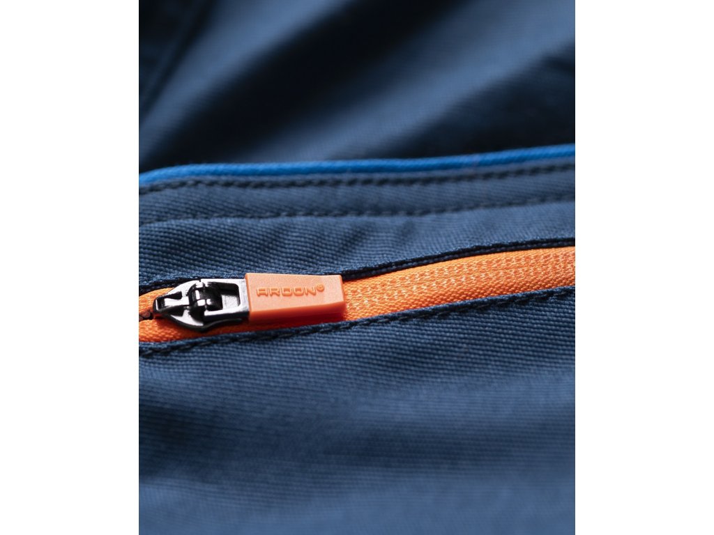 • na pravej nohavici je umiestnené multifunkčné vrecko na skladací meter, skrutkovač a odlamovací nôž so širokými pútkami, na ľavej nohavici je veľké dvojité vrecko kryté pätkou na cvok, trojité prešitie v namáhaných partiách