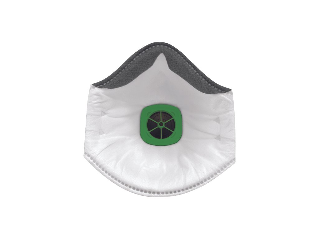 Respirátor s výdychovým ventilom, FFP1. Chráni pred pevnými časticami a aerosólmi do koncentrácie neprevyšujúcej 4x NPK/PEL.