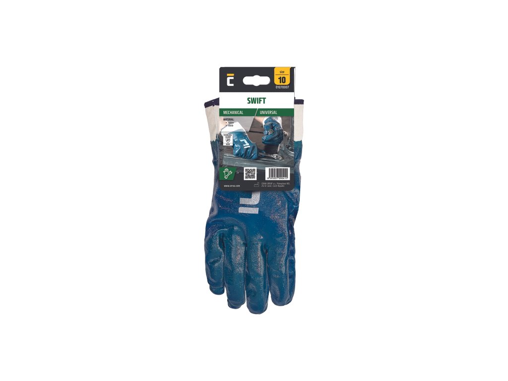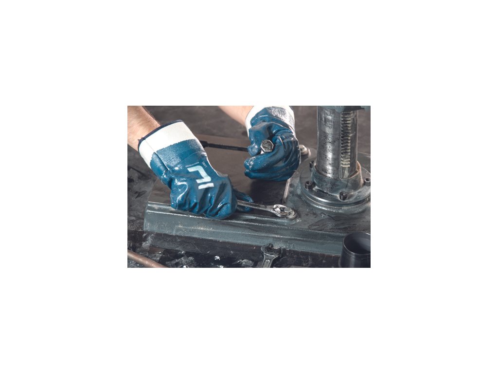 • rukavice šité z bavlněného úpletu • celomáčené v nitrilu • s tuhou manžetou