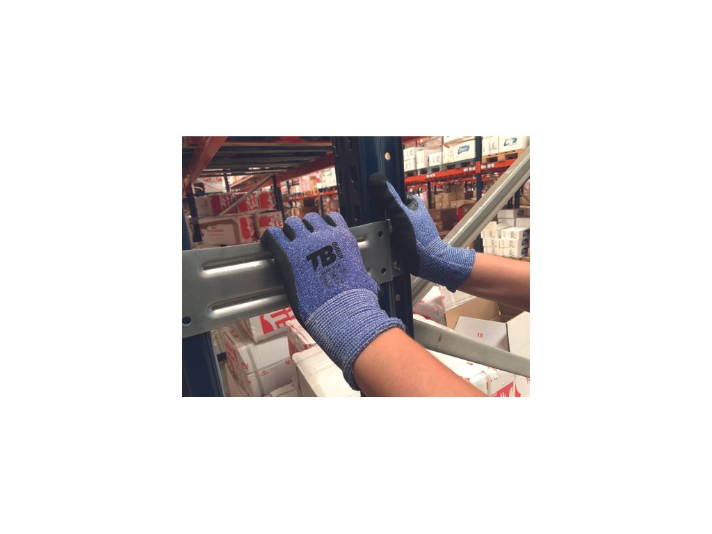 • modré bezšvové rukavice vyrobené z HDPC, sklenených vlákien a nylonu namočené v mikroporéznom nitrile na dlani a prstoch • spevnenie medzi ukazovákom a palcom • neobsahujú silikón • pratelné • pletená manžeta • hustota pleteniny 13 GG