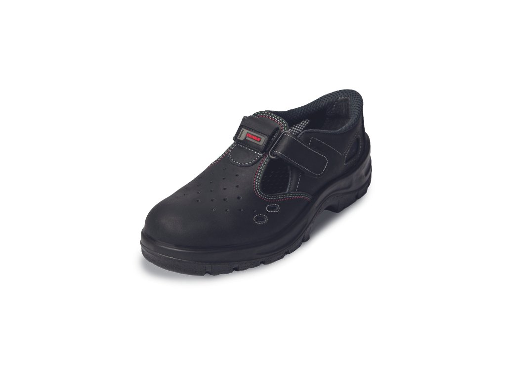 Bezpečnostné sandále s oceľovou tužinkou, antistatickou a protišmykovou podošvou odolnou voči pohonným hmotám, absorpciou energie v päte a zvrškom z priedušnej kože.