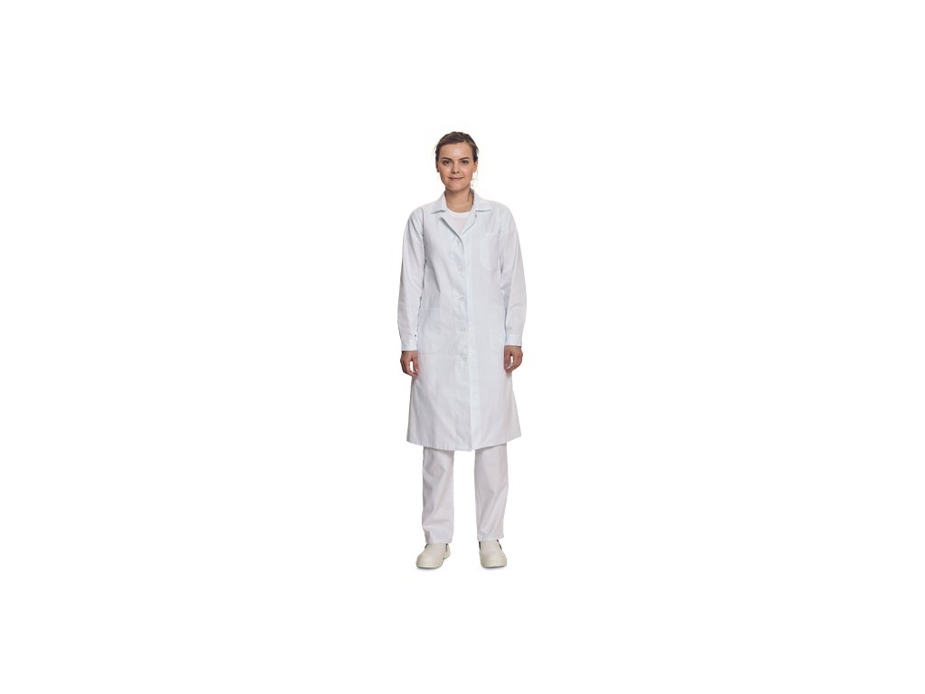 • dámsky bavlnený pracovný kabát s dlhým rukávom • rukávy s gombíkmi • 3 vrecká • voľný zadný pás