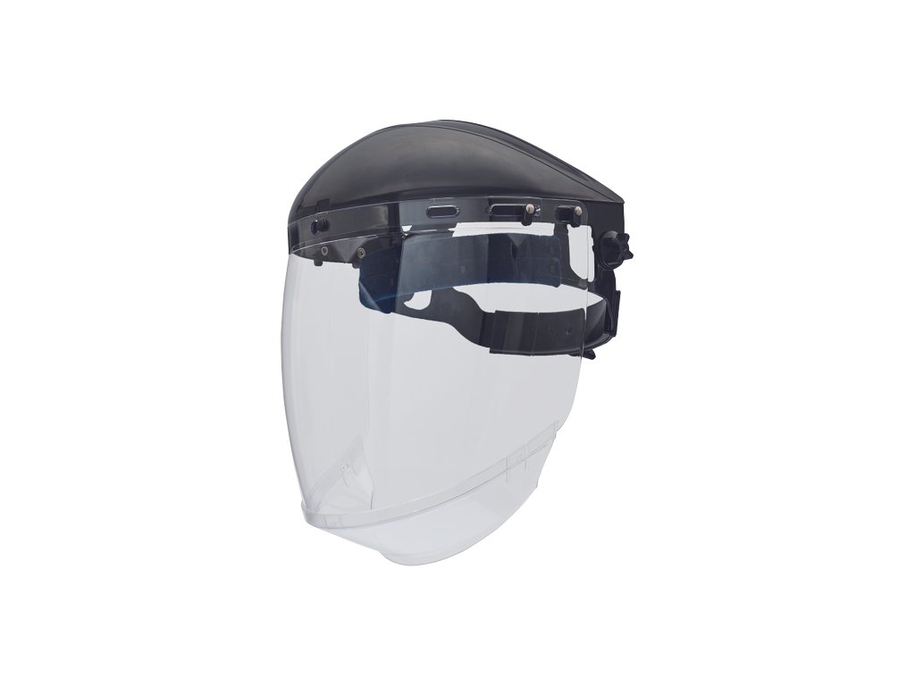 číry PC celotvárový štít s náhlavným držiakom z ABS; zvýšená ochrana v oblasti brady; zorník triedy 1AT